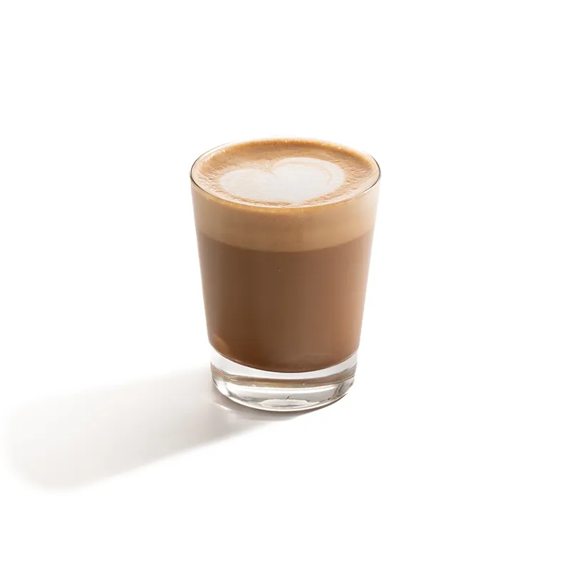لیوان 360 میلی لیتر، قهوه 100% عربیکا، قهوه متشکل از اسپرسو، سس شکلات، شیر گرم و فوم شیر